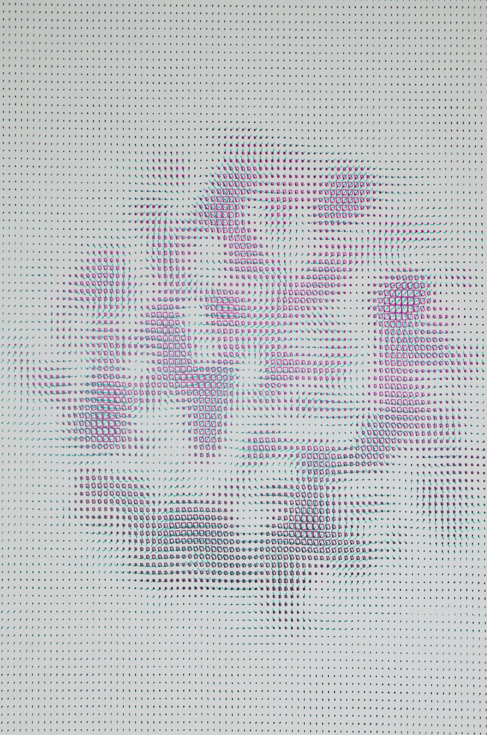 El proceso comienza con Fields_, un algoritmo que da vida a una serie de estructuras gráficas. Estos trazos, que son la esencia de la obra, se perfeccionan a través de la optimización gráfica, una etapa donde se ordenan en una secuencia cinemática para guiar al robot con la máxima eficiencia. Finalmente, esta coreografía de trazos se traduce a lenguaje máquina, permitiendo que el robot los trace y dibuje, transformando el código en una pieza de arte tangible.