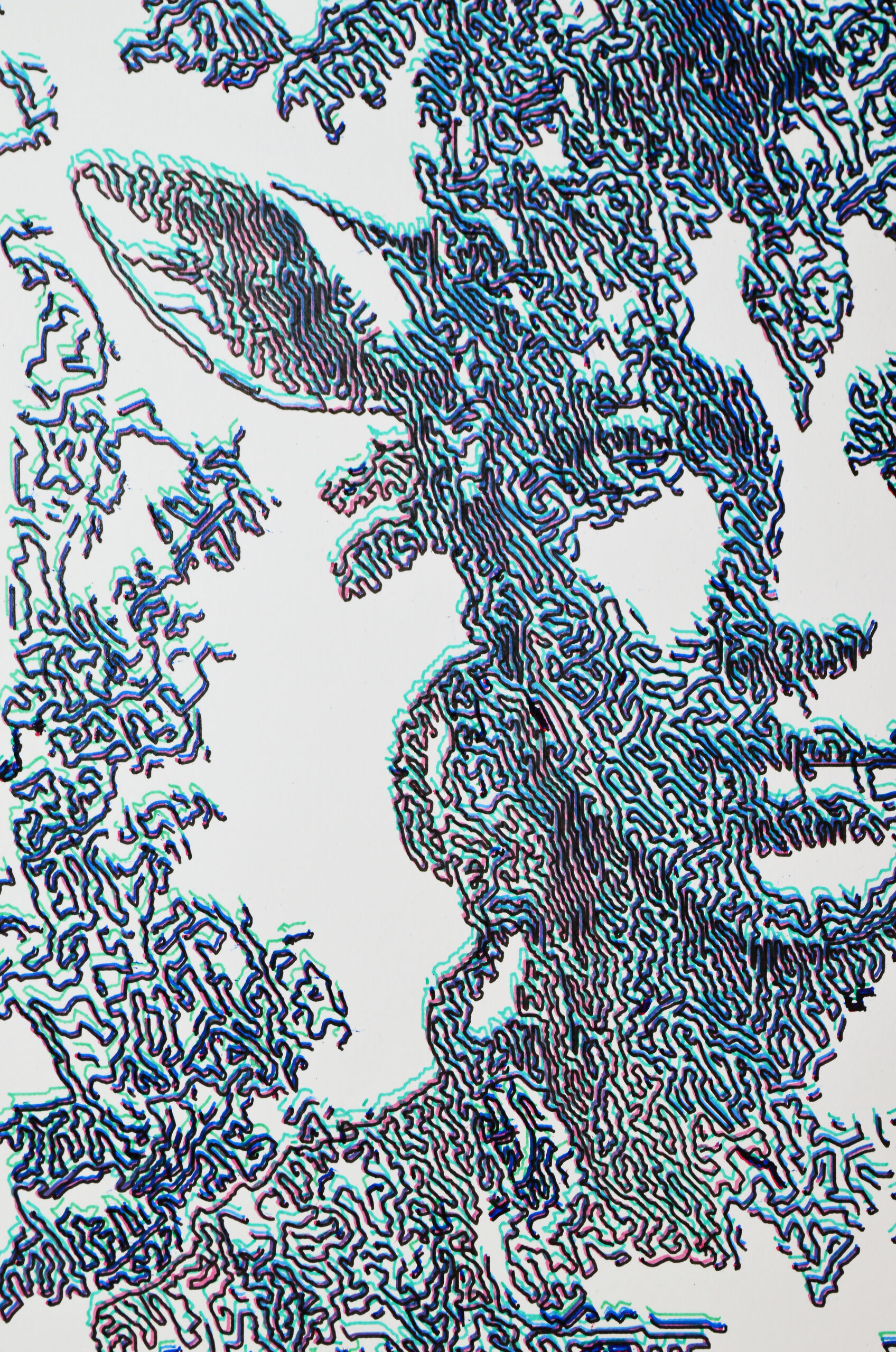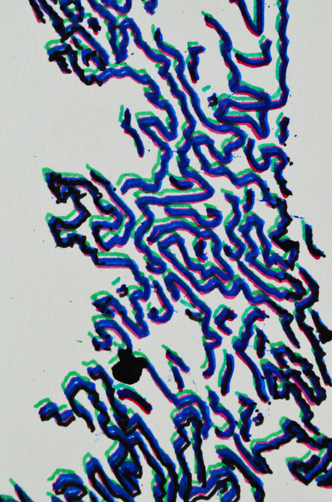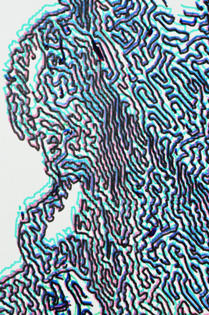 Tinta de archivo sobre papel. Dibujo robótico